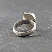 SIZE: This ring is sized US 8 1/4. The cabochon measures about 17.5x8.6mm; the top with leaves measures 19x15mm (3/4 x just under 5/8"). The band is 4.75mm (just under 1/4") wide and 1.75mm thick.