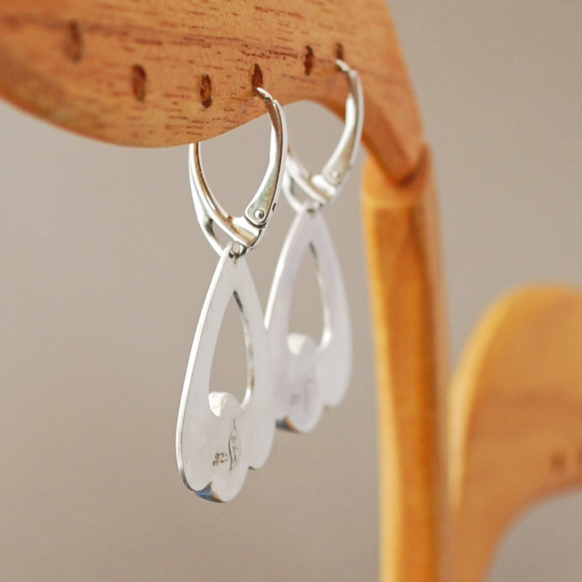 These simple but elegant earrings feature lovely deep purple Amethyst tear drops, nestled into an Art Deco styled sterling silver setting. They hang from lever back ear wires which keep them securely on the ear. These ear wires can be switched out for fish hook ear wires if desired - please include a note with your order.